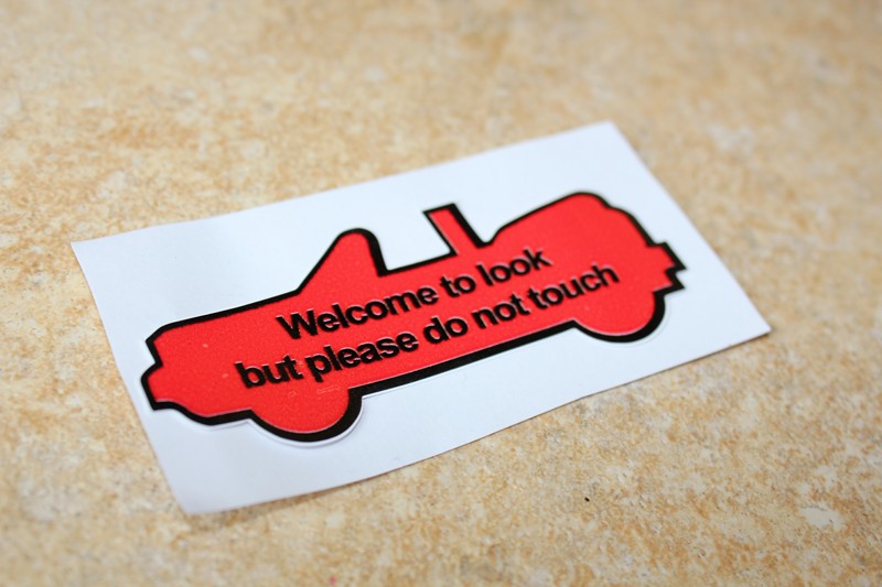 Showing the text ‘welcome to look but please do not touch’